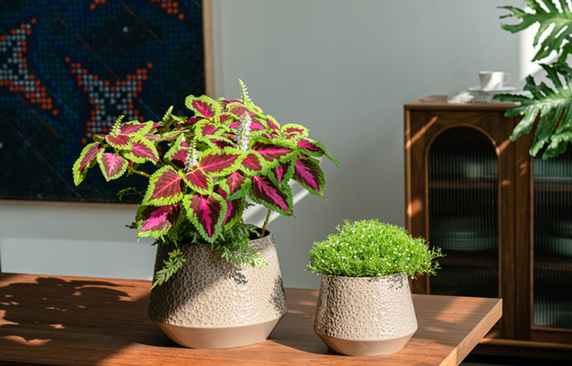 公司生產的氧化鎂花盆,重量輕、防凍、防紫外線、超耐用,造型紋理美觀大方,深受市場用戶喜愛。現有研發人員10人,致力于開發功能更完善,外觀更精美的各式花盆產品。研發部每年以推出2大新系列,上百款款式的速度,為客戶帶去全面美好的種植體驗。